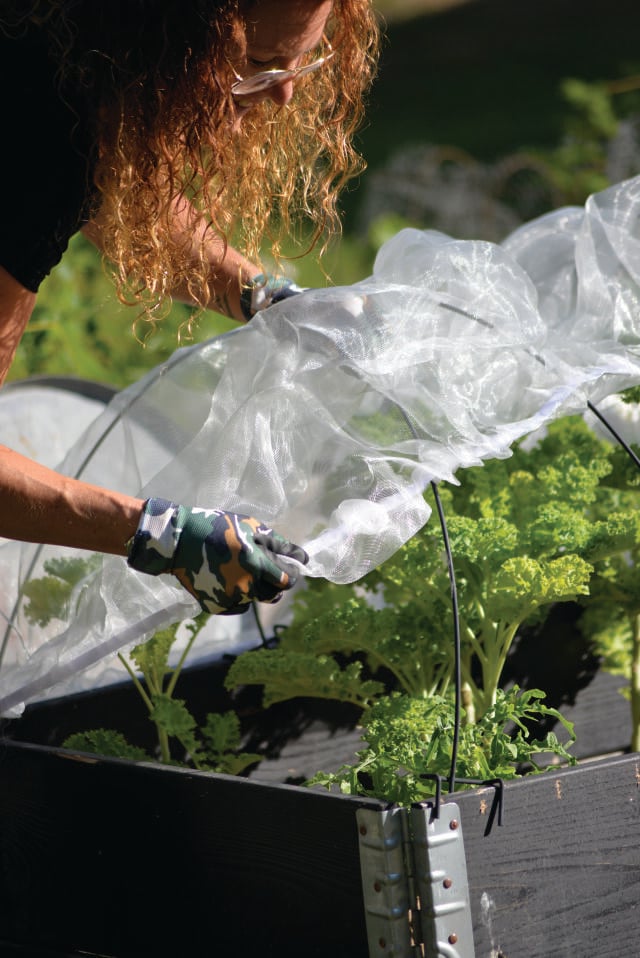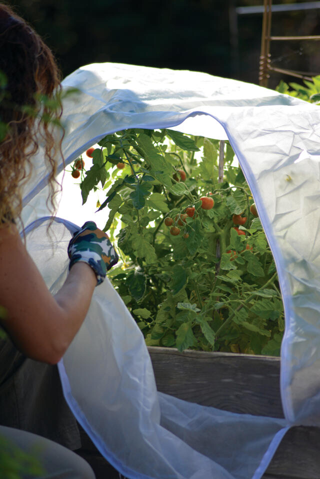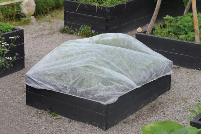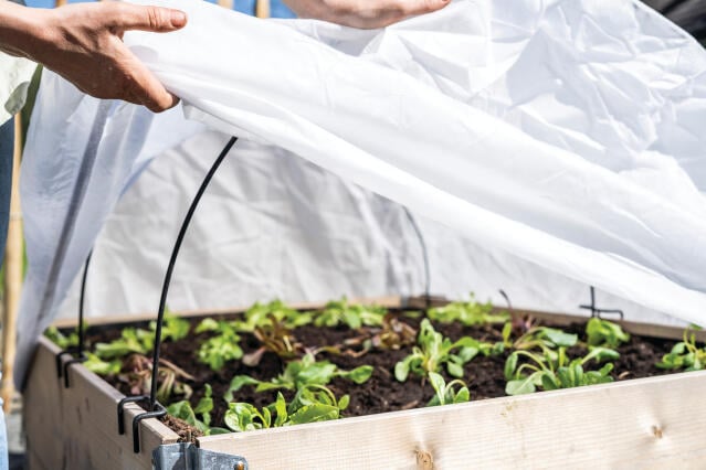 Peitä kylvöalue villakankaalla suojataksesi kasvit pakkaselta ja äärimmäiseltä kylmyydeltä.