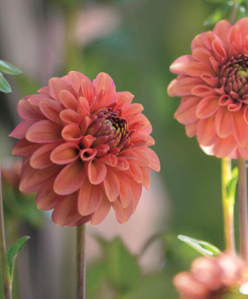 Korkea, aprikoosinvärinen pompom-daalia on tummine vanoineen upea leikkokukka. Kesän kaunotar kukkapenkissä ja kimpussa.
