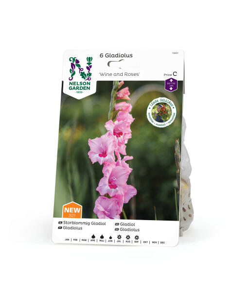 Gladioluksen trumpetinmuotoisissa kukissa on ihanaa kontrastia; vadelmanpunainen keskusta ja hennon vaaleanpunaiset terälehdet. Varret voivat kasvaa 120 cm:n pituisiksi. Hieno sekä kukkapenkissä että kimpussa.