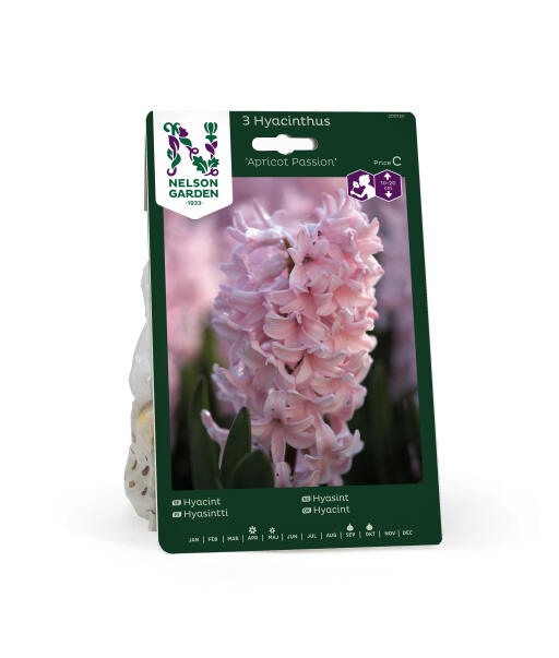 Hyasintti on ihanasti tuoksuva sipulikasvi. 'Apricot Passion'-lajikkeen pastellinsävyiset, aprikoosit kukat kukkivat tiheästi ja tuovat puutarhaan ihanaa kevään tuntua. Sopii myös istutettavaksi ruukkuun.