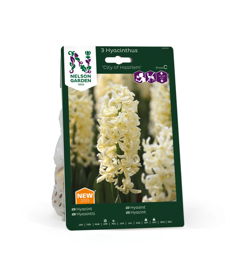 Hyasintti on hyväntuoksuinen sipulikasvi. 'City of Harlem' kukkii keltaisen eri sävyissä, ja siinä on upea tuoksu. Hyasintit sopivat hyvin kukkapenkkiin pensaiden ja muiden perennojen lomaan, mutta sipulit voi istuttaa myös ruukkuihin, jolloin tuoksun tuntee paremmin.