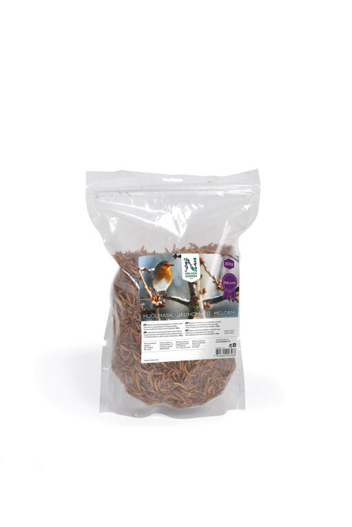Jauhomadot eli kuivatut jauhokuoriaisen toukat sisältävät runsaasti proteiinia ja ovat hyödyllistä herkkua puutarhan linnuille. Sirottele kourallinen tai sekoita muuhun linnunruokaan. 300 g