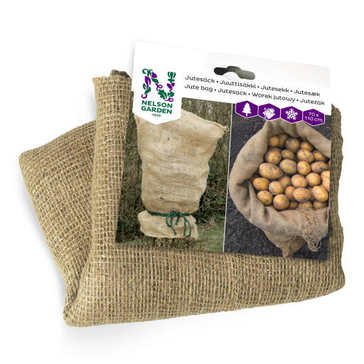 Juuttisäkki kasvien peittämiseen. Suojaa pakkaselta ja lumelta sekä voimakkaalta auringonpaisteeltakin, myös kuivuudelta keväisin. Voidaan käyttää mm. ruukunsuojana, polttopuiden varastoimiseen, vihannesten säilyttämiseen ja lahjasäkkinä jouluna. 70 x 110 cm