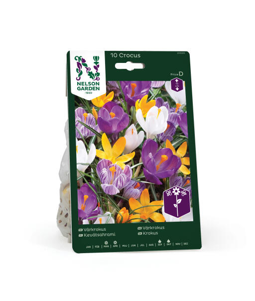 Ihana sekoitus erivärisiä krookuksia. Tämä täytyy saada puutarhaan kevääksi! Sopii hienosti kukkapenkkiin, pensastojen ja pensasaitojen reunustoille sekä puiden edustalle kevätauringon paisteeseen.