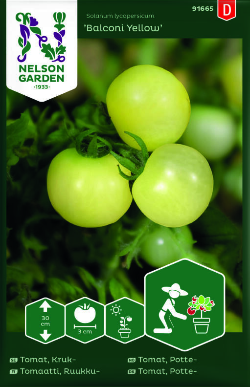 Ruukkutomaatti 'Balconi Yellow' on 30 cm korkea kirsikkatomaatti. Taimi on hyvin pienikokoinen, ja sillä on tummanvihreät lehdet. Hedelmät ovat vaaleankeltaisia ja pitkulaisia, ja niissä on terävä kärki. Hedelmä kehittyy nopeasti, ja tomaateissa on runsaasti makua ja makeaa raikkautta.