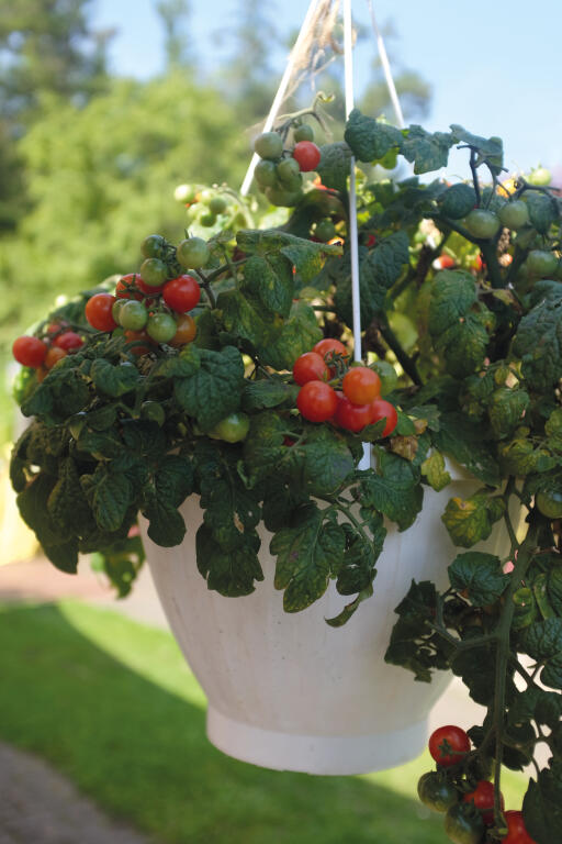 Jos 'Cherry Falls' -lajikkeen taimista riittää yksi ylimääräinen, etsi sille paikka kukkapenkistä ja voit napostella tomaatteja rikkakasveja kitkiessäsi. Kirsikkatomaatit sopivat kauniisti yhteen lämpimänväristen kukkien kanssa.