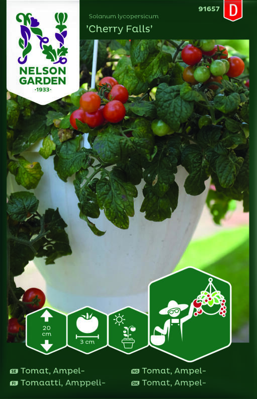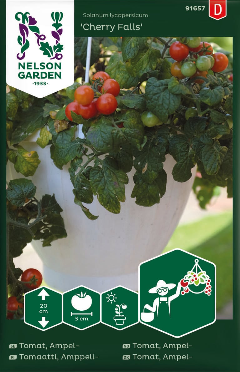 Cherry Falls' on pienikokoinen lajike, joka tuottaa suuren sadon kirkkaanpunaisia kirsikkatomaatteja. Tomaatin maku on makea ja mehukas, ja siinä on hieman happamuutta. Taimi ei kasva korkeaksi, mutta levittäytyy mielellään sivusuunnassa. Lajike sopii ruukkuun tai amppeliin terassille tai parvekkeelle. 'Cherry Falls' kehittyy nopeasti siemenestä taimeksi ja on vastustuskykyinen sairauksille.