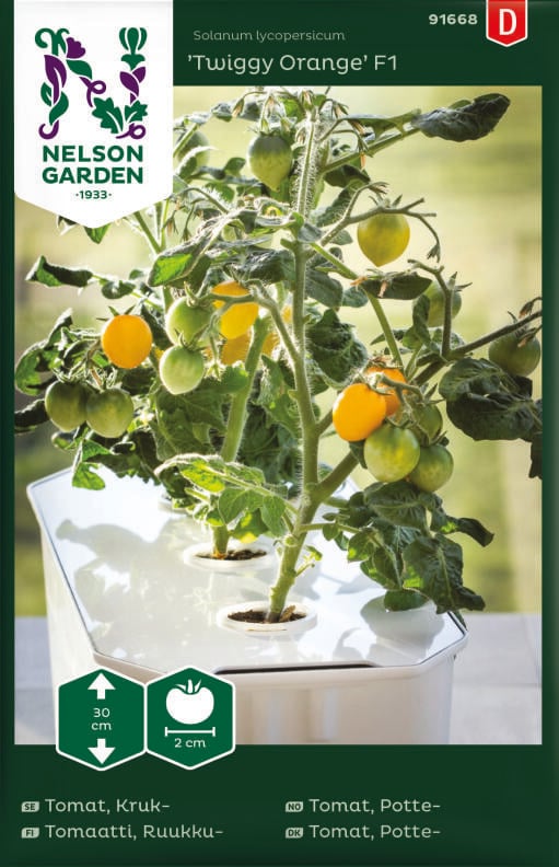 Ruukkutomaatti 'Twiggy Orange' F1 on kiva tomaatti viljeltäväksi keittiön pöydällä, parvekeruukussa tai puutarhassa. Ihana napostelutomaatti lapsille, sillä sen voi helposti poimia itse. Maku sopii monenlaiseen.