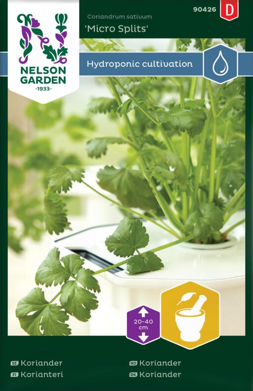 Micro Splits -korianteri sopii erinomaisesti vesiviljelyyn. Korianteri on ainutlaatuinen, tuore yrtti, joka sopii erinomaisesti aasialaisiin ja eteläamerikkalaisiin ruokalajeihin. Sopii myös multaan kylvettäväksi.