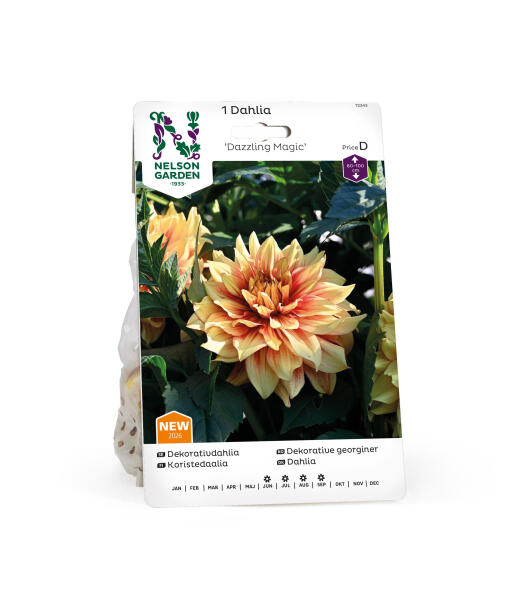 Kaunis daalia, jonka värit vaihtelevat punaisesta oranssiin ja keltaiseen. Ihana väriyhdistelmä loppukesän kukkakimppuun. Myös tukevien varsiensa ansiosta lajike on mainio leikkokukka.