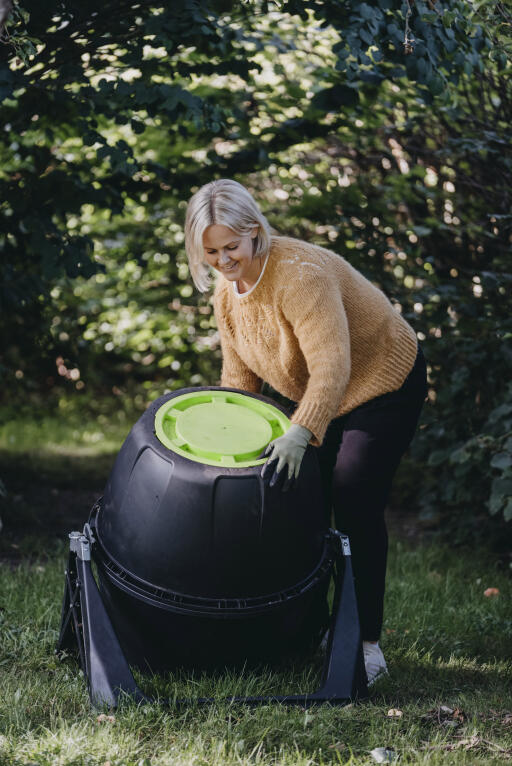 Tehokas kompostori – kätevä ja siistinnäköinen puutarhassa. Jalustan avulla kääntäminen on helppoa. Sisäinen ilmastus nopeuttaa kompostointiprosessia. Komposti on valmis 3-4 viikossa. Yksinkertainen prosessi, tuloksena ravinteikas lisä puutarhan kasvualustaan. Kompostointi on luonnollinen tapa kierrättää. Kuihtuva aines on näin hyödyksi eläimille ja mikro-organismeille.