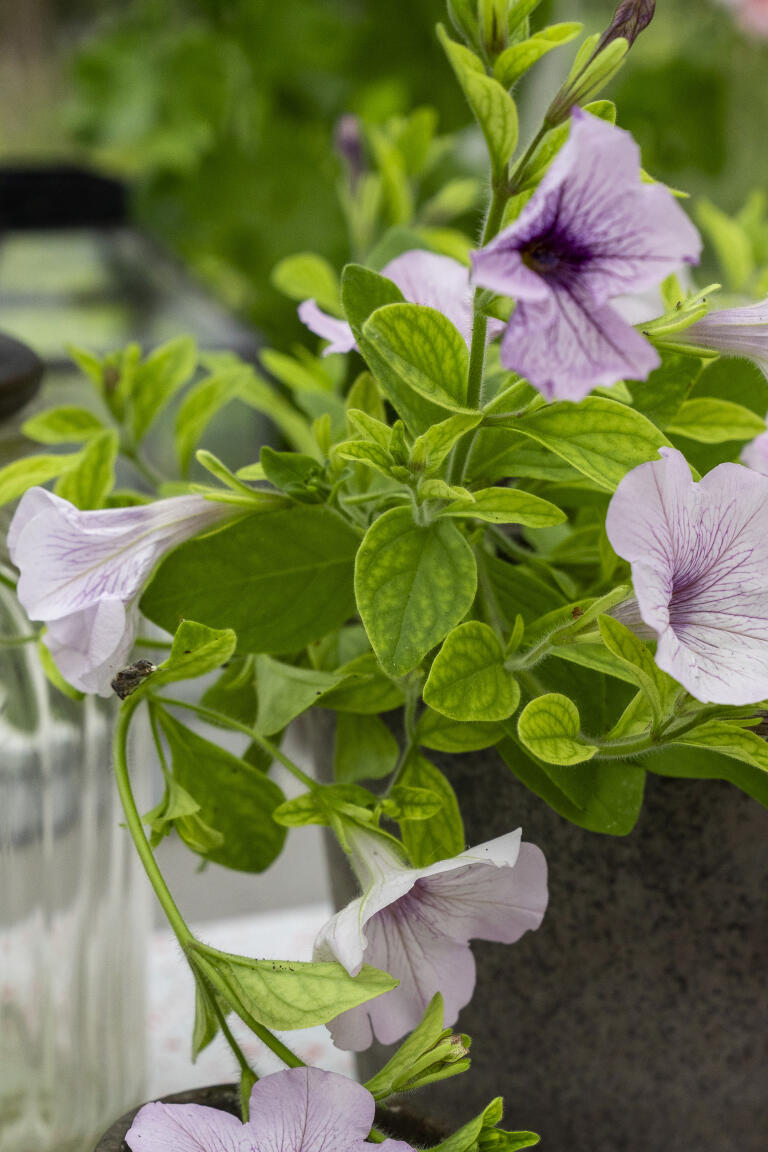 Hopeanlilat kukat, joissa on tummanliloja juovia – todellinen kaunotar. Lakastuneita kukkia ei tarvitse nyppiä pois. Jotta taimi kasvaa suureksi, sitä on hyvä viljellä suuressa, hyvin lannoitetulla mullalla täytetyssä ruukussa. Erinomainen kukkapenkkiin, parvekelaatikkoon ja amppeliin. Viihtyy kuohkeassa maassa ja lannoitetaan säännöllisesti.