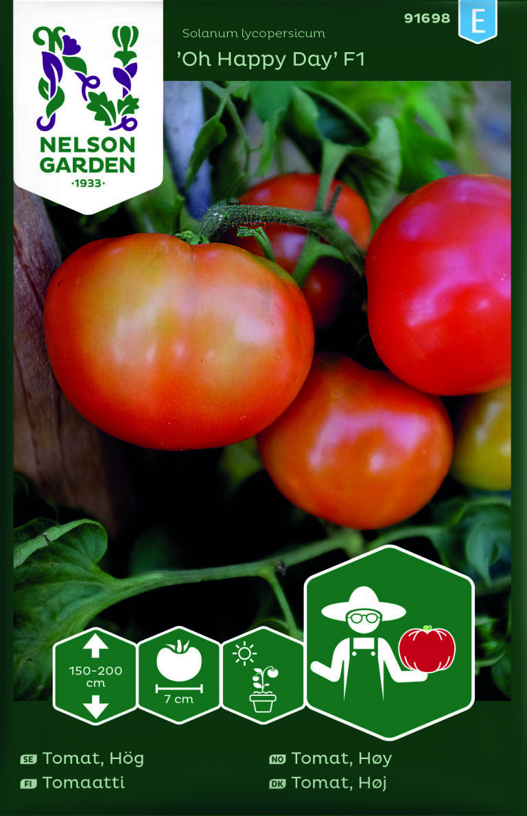 'Oh Happy Day' F1 on upea pihvitomaatti, jonka pyöreät, punaiset ja hieman litteät hedelmät kasvavat 3-5 tomaatin ryppäissä. Hienovaraisessa maussa on reilusti makeutta ja jonkin verran hapokkuutta.