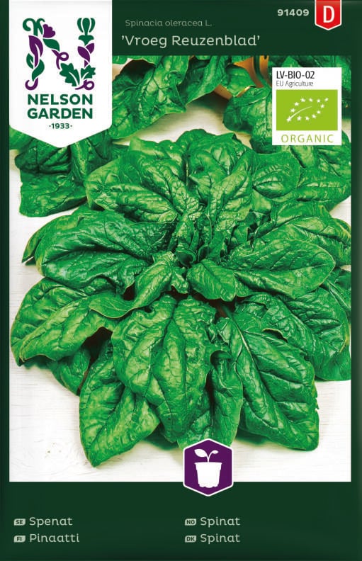 Luomulaatuinen siemen. Pinaattia voi viljellä monella tapaa kasvupaikasta ja vuodenajasta riippuen. Sisältää runsaasti vitamiineja ja hivenaineita. Lajike tuottaa runsaasti tummanvihreitä lehtiä. Kylvä useaan otteeseen, näin saat koko ajan tuoreita lehtiä, mutta pidä taukoa keskikesällä, sillä silloin taimet alkavat herkästi kukkia. Sopii pakastettavaksi. Viihtyy parhaiten multavassa, kosteutta pitävässä maassa, mutta menestyy melkein minkälaisessa maassa tahansa. Kastele runsaasti.