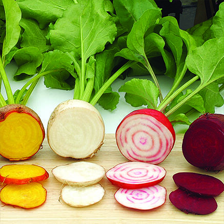 Värikäs sekoitus punajuurilajikkeita: keltaista, valkoista, punaista ja punavalkoraidallista. Liian aikaisin kylvettynä kukkii helposti, jos ne altistuvat kevään yöpakkasille.
