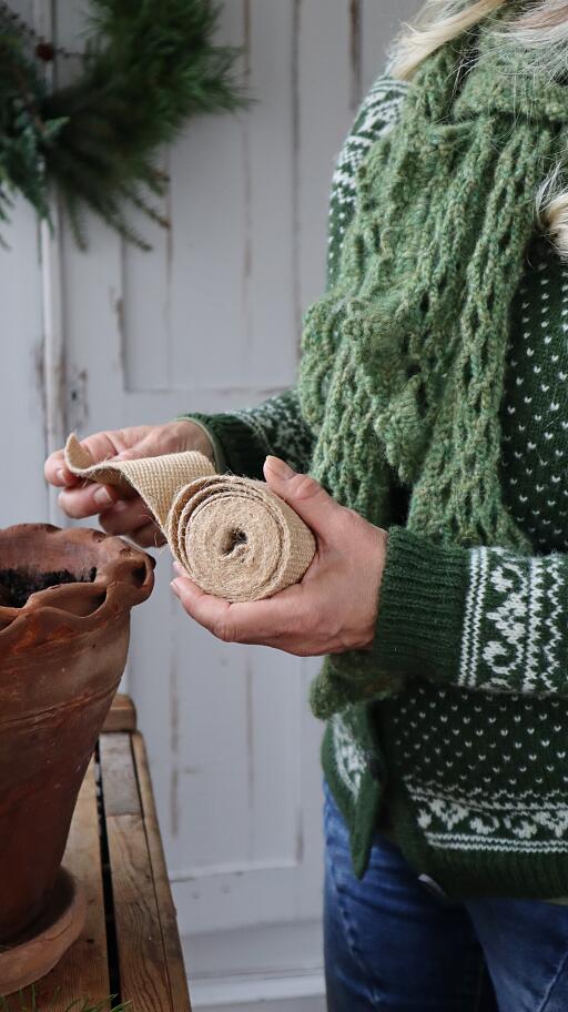 Leveä juuttinauha on kaunis ja hellävarainen ratkaisu kasvien suojaamiseen. Sido sitä yhdessä villan kanssa kasvien ympärille, jotta ne ovat hyvin suojassa. Kuuden sentin levyinen nauha tekee sidoksesta tukevan ja luotettavan.