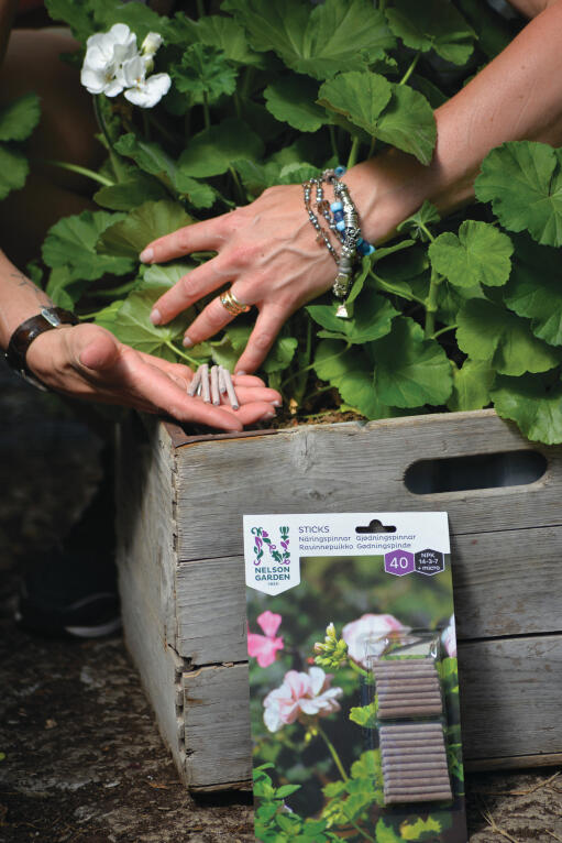 Kivennäisravinne. Helppo käyttää. Puikko työnnetään multaan, jolloin ravinteita vapautuu jokaisella kastelukerralla kolmen kuukauden ajan. NPK 14-3-7+micro