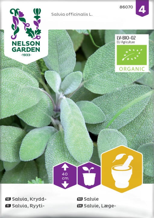 Luomulaatuinen siemen. Salvia on aromaattinen maustekasvi, jolla on hopeanvihreät, hieman nukkaiset lehdet. Kerää lehtiä vähitellen ja käytä ne tuoreina tai kuivattuina, vaikkapa pekoniin kiedotun broilerinfileen kanssa.