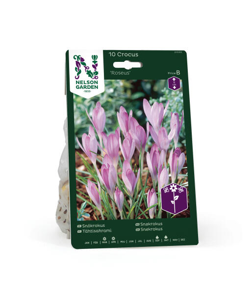Lumikrookus on eräs varhaisimmista krookuksista. Anna villiintyä nurmikolla tai kukkapenkissä muiden aikaisten lajikkeiden kanssa. Sopii myös ruukkuun. 'Roseus'-lajikkeen terälehdissä on kaunis syklaamiroosan värisävy ja hopeanharmaat ulkoreunat.