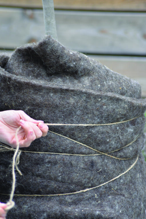 Pyöreä kookosmatto estää rikkaruohojen kasvua ja pitää mullan kosteana.
