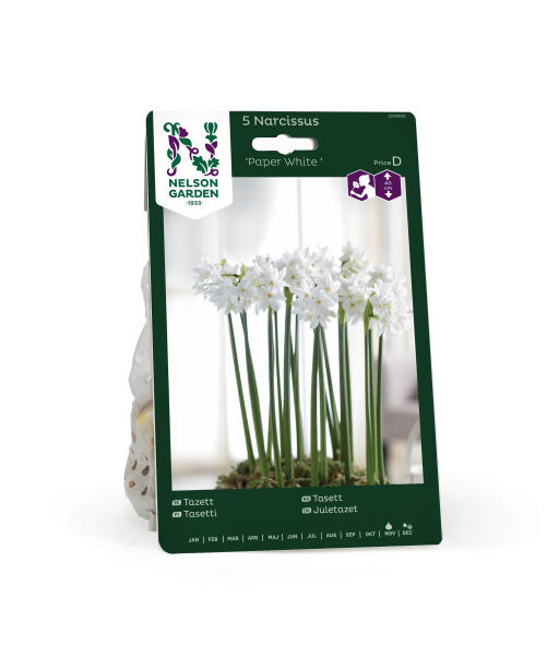 'Paper White' on hurmaavasti tuoksuva tasetti, jolla on kauniin valkoiset kukat. Kasvata jouluksi sisällä, istutukseen sopii hienosti marmorimurska.