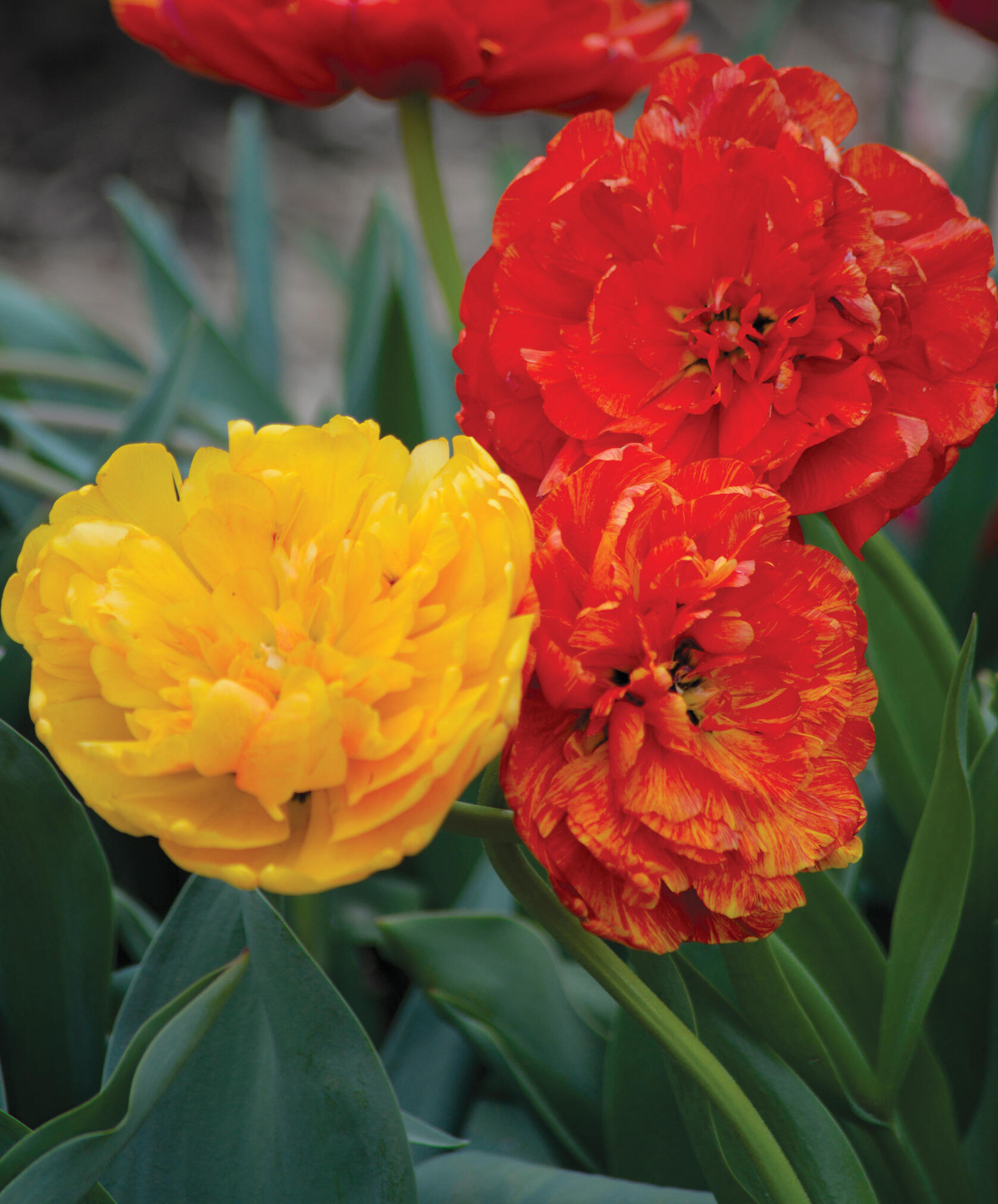 Näyttävä tulppaani, joka avautuu pionin tavoin vähän kerrassaan. Väri taittuu kullankeltaisesta oranssiksi ja oranssinpunaiseksi. Tukeva ja tuoksuva väriläiskä kukkapenkkiin kevään viimeisiksi viikoiksi.