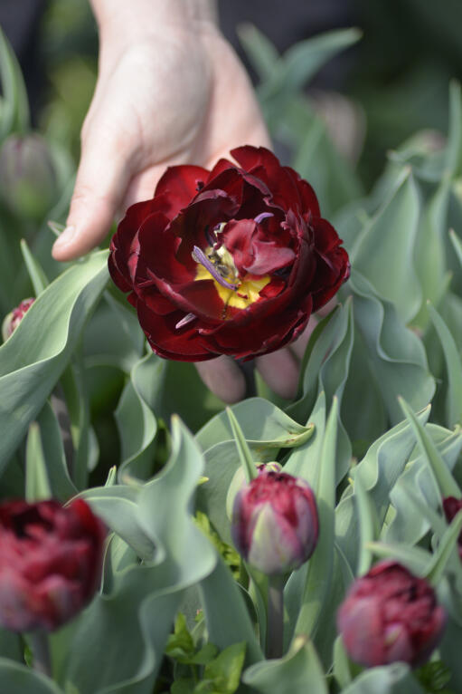 Mustanpuhuvasta nupusta aukeaa syvän punainen tulppaani runsaine terälehtineen. Kukka muistuttaa pionia tai ruusua ja sopii kauniisti yhteen vaaleanpunaisten tai valkoisten tulppaanien, valkoisten narsissien tai sinisten helmihyasinttien kanssa.