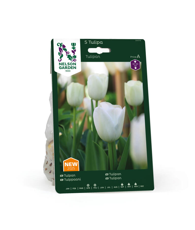 Klassisen hillitty valkoinen tulppaani. Varsi on tukeva, ja kukka muodoltaan kauniin yksinkertainen. Kukat ovat melko suuria, valkoisia ja kestävät pitkään. Kaunis myös leikkokukkana kimpuissa.