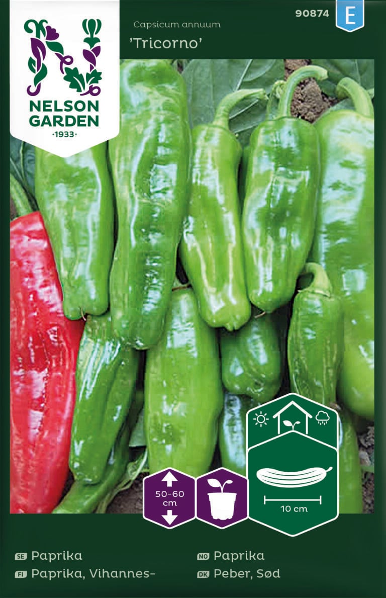 Vihreät hedelmät muuttuvat kypsyessään punaisiksi. Voidaan korjata vihreinäkin. Hedelmä on makea, maukas ja hyvä paistettavaksi (kuten padron). Taimi kasvaa korkeaksi ja antaa suuren sadon. Viljele suojaisessa ja lämpimässä paikassa, esim. lasitetulla parvekkeella tai kasvihuoneessa. Suihkuttele säännöllisesti pitääksesi tuholaiset loitolla.
