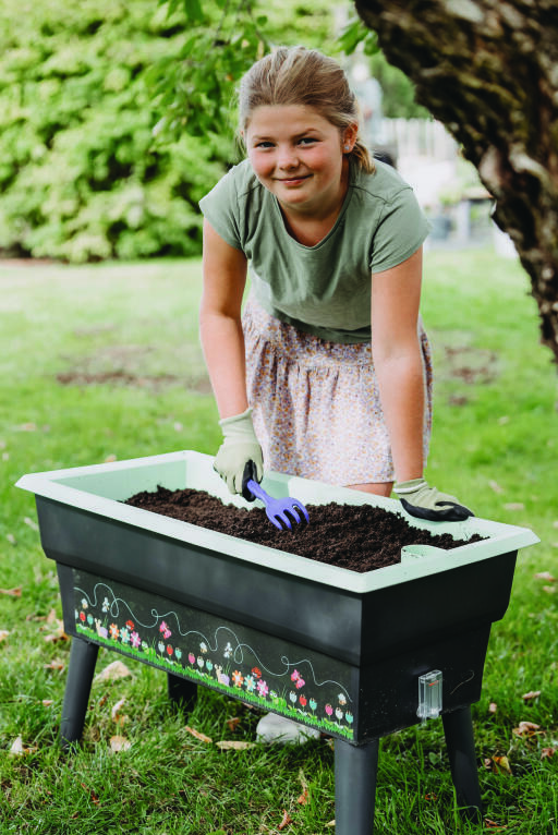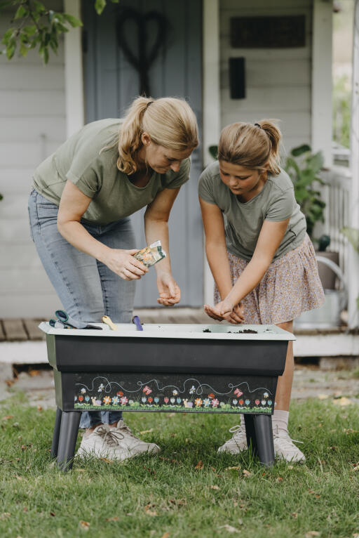 Viljeleminen ei katso ikää – myös nuoremmat asiasta innostuneet perheenjäsenet saavat osallistua. Viljelylaatikon ansiosta puutarhan ilo ja luovuus kukoistavat kotona niin puutarhassa kuin parvekkeellakin. Pakkaus sisältää suuremman viljelylaatikon, korin ja kaksi työkalua, joilla pääsee hyvään alkuun.