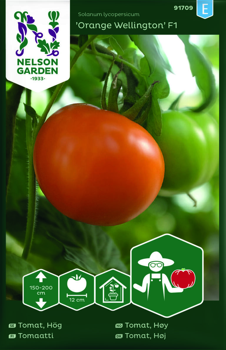 'Orange Wellington' F1 on ihana aprikoosinvärinen pihvitomaatti. Kuori on ohut, ja hedelmäliha kiinteää ja tiivistä. Mahtavassa 350 gramman painoisessa hedelmässä on runsaasti makua. 'Orange Wellington' F1 tuottaa suuren sadon, ja satokausi on pitkä. Terve lajike.